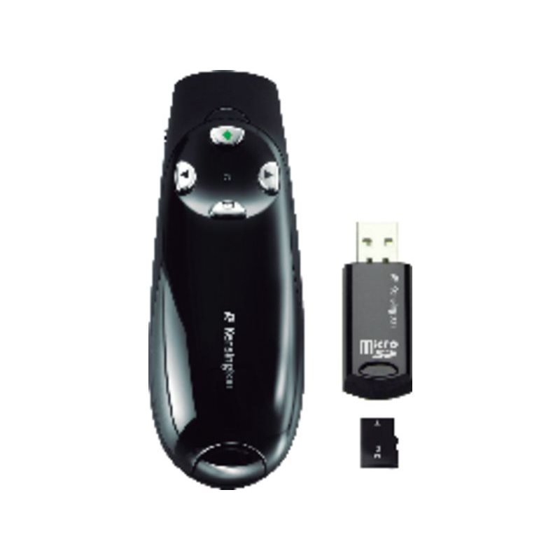 Láser verde, control mediante cursor y memoria Haga que su presentación sea inolvidable gracias al presentador con láser verde con control del cursor Presenter Expert de Kensington. El Presentador Expert guarda su presentación en una llave de 2 GB que almacena dentro del presentador. En 2 GB hay espacio más que de sobra para guardar varias presentaciones, por lo que puede relajarse sabiendo que con el Presentador Expert tiene todo lo que necesita. Y ya sabemos todos que es fundamental estar relajado durante las presentaciones. Además, le tranquilizará saber que el diseño intuitivo de cuatro botones del Presentador Expert facilita la navegación instantánea en su presentación Keynote® o PowerPoint®. El Presentador Expert le ayudará a señalar un punto gracias al láser verde, adecuado incluso para las salas más grandes y las pantallas más brillantes. El láser verde es diez veces más brillante que el rojo estándar, por lo que destaca incluso en las pantallas retroiluminadas más brillantes tales como paneles LCD y de plasma. Más aún, cuando necesite desplazar el cursor, basta con que pulse rápidamente un botón para tener el control total del cursor. Al igual que muchos botones de Expert, es fácil encontrarlos en habitaciones oscuras gracias a la retroiluminación. El potente mando a distancia de 2,4 Ghz es inmune a las interferencias y le permite controlar Keynote or PowerPoint a una distancia de hasta 50 metros (150 pies). - Una llave extraíble de 2 GB que guarda sus presentaciones - Alcance inalámbrico de hasta 50 metros (150 pies) - El láser verde es diez veces más brillante que el rojo estándar - Indicador de carga baja de las pilas - Botones retroiluminados - Dos modos: cambie instantáneamente entre el modo de presentación y el modo de control del cursor - Interruptor de encendido y apagado - El receptor USB se guarda dentro - Bolsa de transporte incluida - Controla Keynote y PowerPoint.